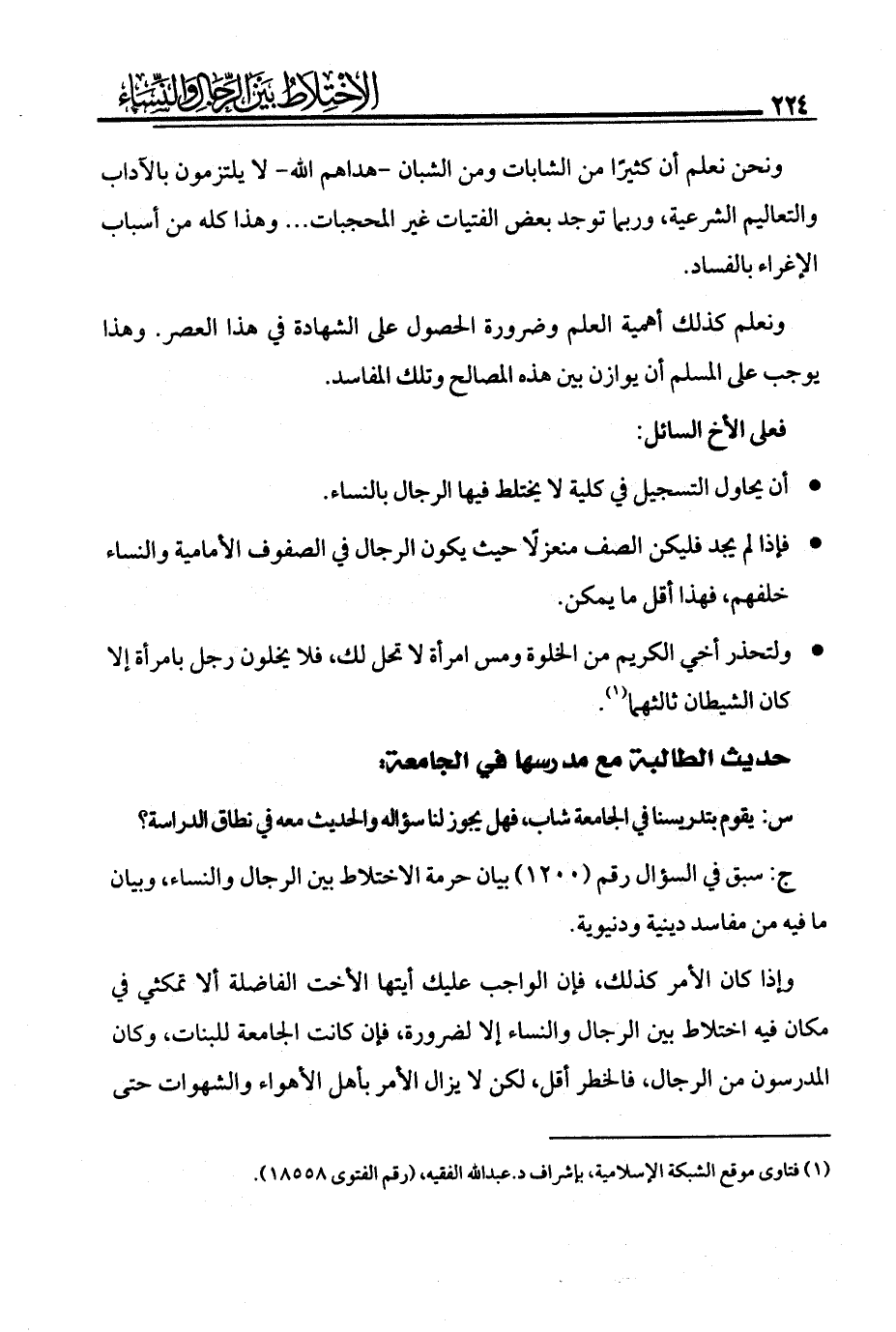(¬1) فتاوى موقع الشبكة الإسلامية، بإشراف د. عبد الله الفقيه، (رقم الفتوى 18558).