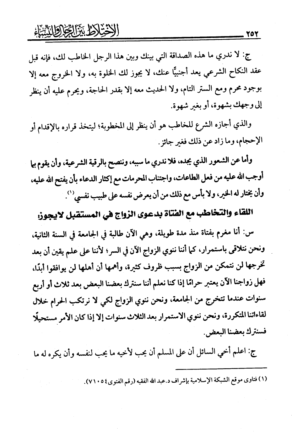 اللقاء والتخاطب مع الفتاة بدعوى الزواج في المستقبل لايجوز: