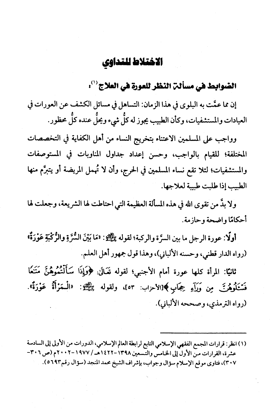 إن مما عمّت به البلوى في هذا الزمان التساهل في مسائل الكشف عن العورات في العيادات والمستشفيات وكأن الطبيب يجوز له كلّ شيء ويحلّ عنده كلّ محظور.