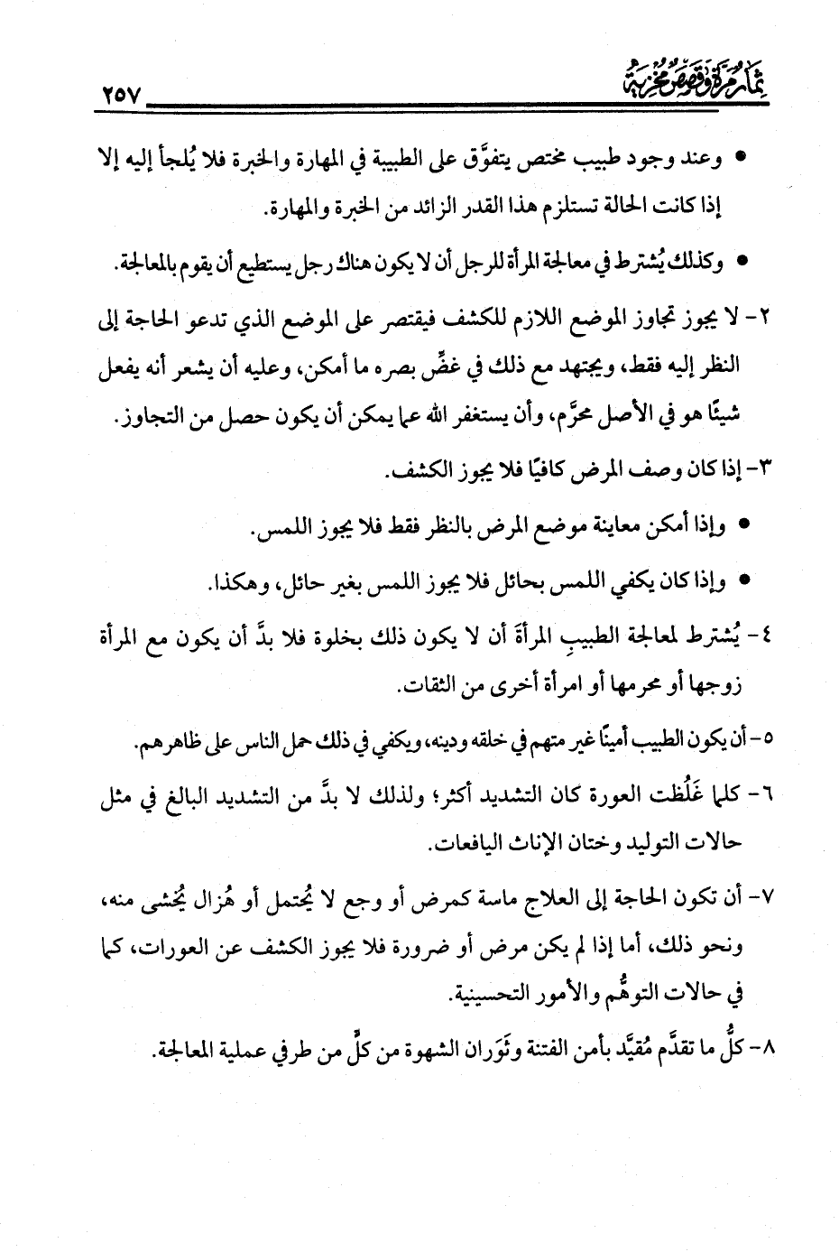8ـ كلّ ما تقدّم مُقيّد بأمن الفتنة وثوَران الشهوة من كلّ من طرفي عملية المعالجة.