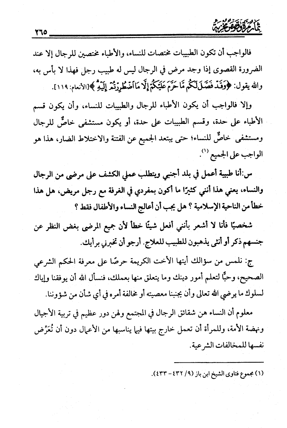 (¬1) مجموع فتاوى الشيخ ابن باز (9/ 432 - 433).