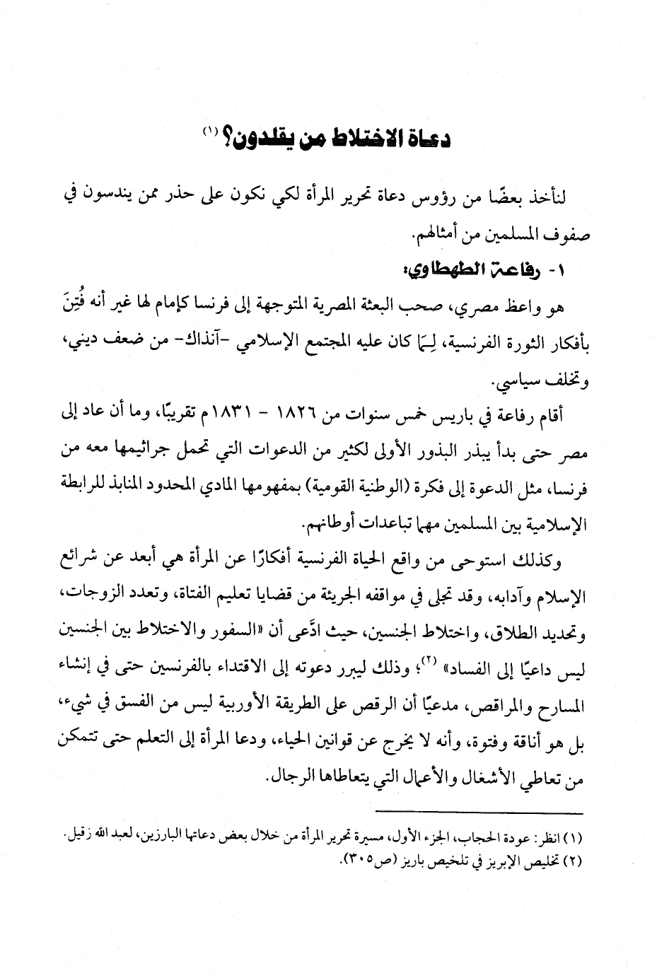 (¬1) انظر عودة الحجاب، الجزء الأول، مسيرة تحرير المرأة من خلال بعض دعاتها البارزين لعبد الله زقيل.