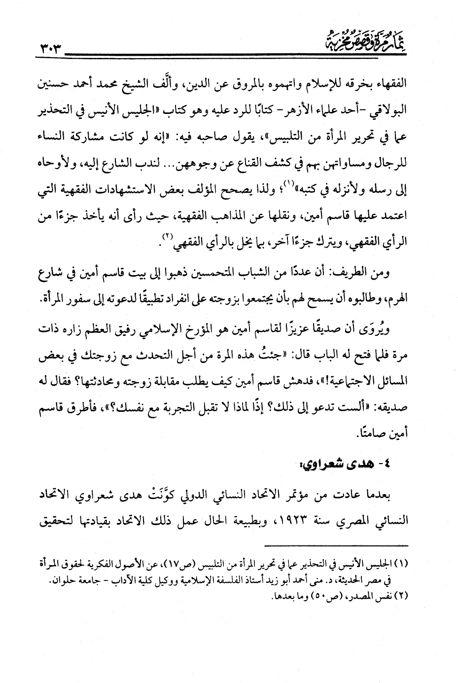 (¬1) الجليس الأنيس في التحذير عما في تحرير المرأة من التلبيس (ص17)، عن الأصول الفكرية لحقوق المرأة في مصر الحديثة، د. منى أحمد أبو زيد أستاذ الفلسفة الإسلامية ووكيل كلية الآداب ـ جامعة حلوان.