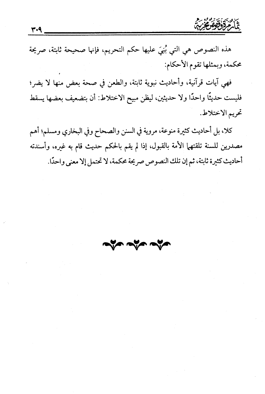 فهي آيات قرآنية، وأحاديث نبوية ثابتة، والطعن في صحة بعض منها لا يضر؛ فليست حديثًا واحدًا ولا حديثين، ليظن مبيح الاختلاط: أن بتضعيف بعضها يسقط تحريم الاختلاط.