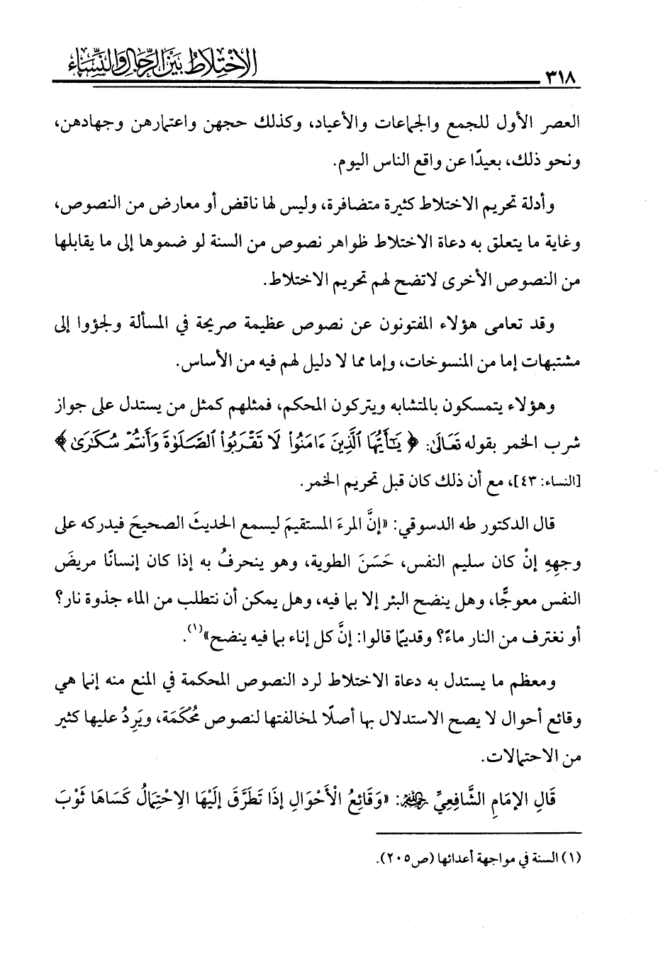 ومعظم ما يستدل به دعاة الاختلاط لرد النصوص المحكمة في المنع منه إنما هي وقائع أحوال لا يصح الاستدلال بها أصلًا لمخالفتها لنصوص مُحْكَمَة، ويَرِدُ عليها كثير من الاحتمالات.