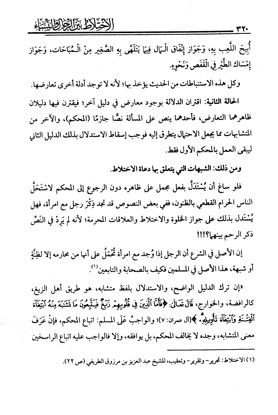 (¬1) الاختلاط، تحرير، وتقرير، وتعقيب، للشيخ عبد العزيز بن مرزوق الطريفي، (ص 22).