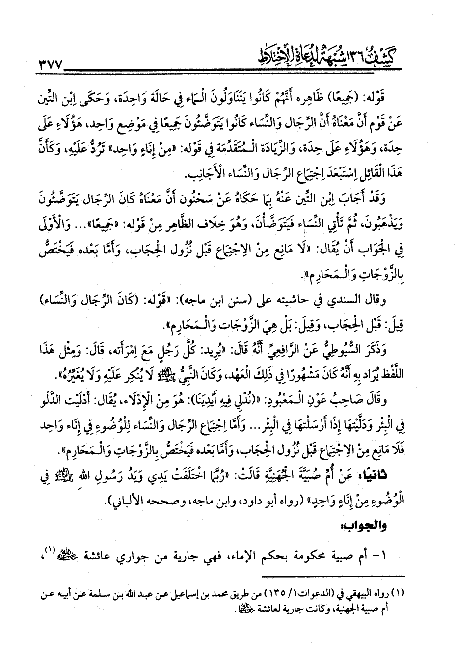فكيف يمنعهم - صلى الله عليه وآله وسلم - من الاختلاط في الصلاة ويسمح لهم بالاختلاط في الوضوء؟