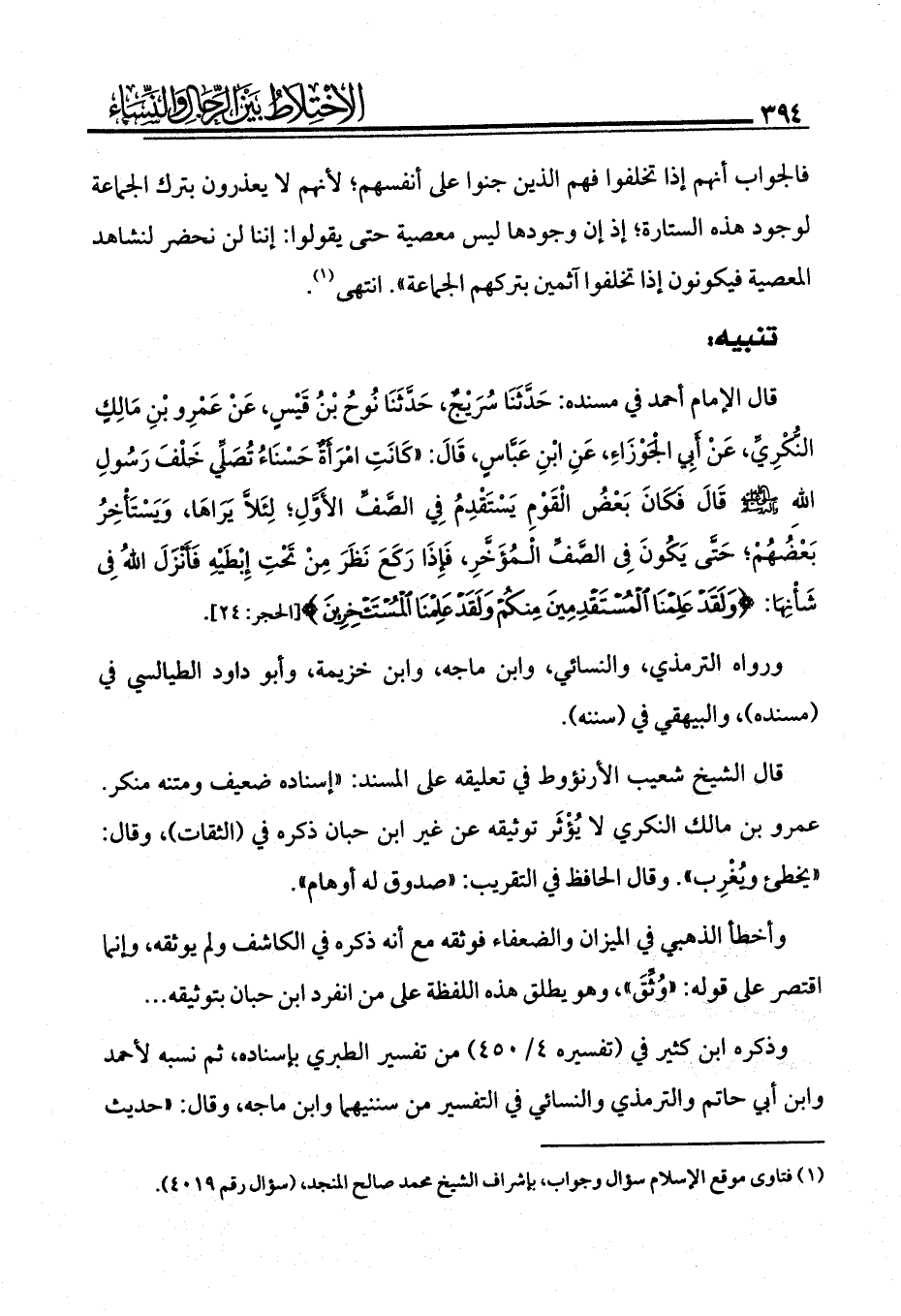 وعمرو هذا تفرد بالحديث الذي نحن بصدده ـ حديث المرأة الحسناء ـ فكان الأوْلى بالشيخ الألباني - رحمه الله - أن يضعِّفه بناءً على قواعده - رحمه الله -.