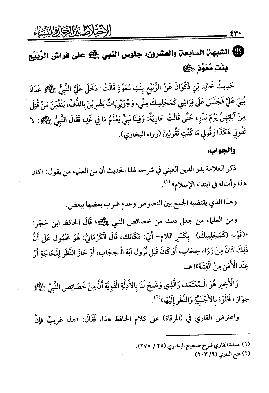 ليس في هذا الحديث ما يدل على الاختلاط؛ لأنه ليست فيه دلالة صريحة على جلوس النبي - صلى الله عليه وآله وسلم - مع النساء فغاية ما فيه أن يكون النبي - صلى الله عليه وآله وسلم - قد سمع ذلك أثناء مروره، ويدل على ذلك قول عائشة - رضي الله عنها - أَنّ النَّبِيَّ - صلى الله عليه وآله وسلم - مَرَّ بِنِسَاءٍ مِنَ الأَنْصَارِ.