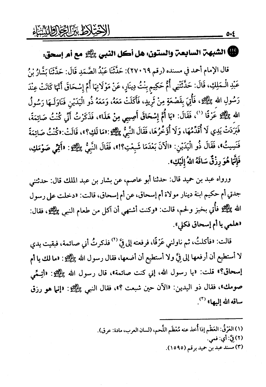 وأخرجه ابن الأثير في (أسد الغابة) ـ في ترجمة أم إسحاق ـ من طريق الإمام أحمد، بهذا الإسناد. وأخرجه الطبراني في (الكبير 25/ 411) من طريق عبد الصمد بن عبد الوارث، به.