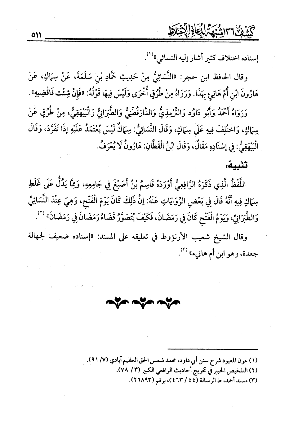 ثانيًا: على فرض صحة الحديث الضعيف، فالنبي - صلى الله عليه وآله وسلم - محرم لفاطمة - رضي الله عنها -؛ فأين هذا من الاختلاط في العمل أو الدراسة لساعات طويلة بلا محرم (¬2).