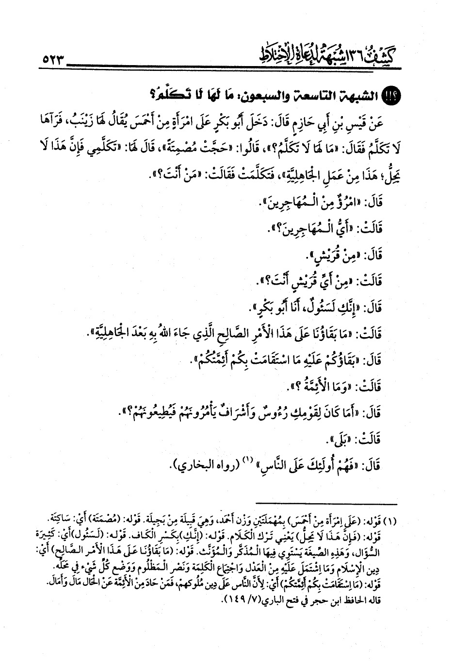 أولًا: كم كان عمر ابنة أنس - رضي الله عنه -؟ هل كانت بالغة أم لا؟ نطالب دعاة الاختلاط بدليل أنها كانت بالغة حتى يستقيم لهم الاستدلال بهذا الأثر.