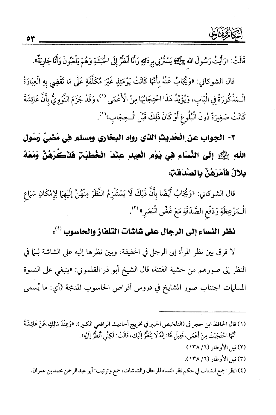 (¬4) انظر: جمع الشتات فى حكم نظر النساء للرجال والشاشات، جمع وترتيب: أبو عبد الرحمن محمد بن عمران.