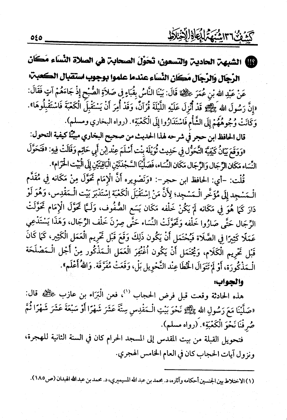 2 - على فرض صحة استدلالهم فهذا لقاء عارض ومحدود، وأبو بكر مَحْرَم لعائشة - رضي الله عنهما -، فأين هذا من الساعات الطوال التي تقضيها المرأة مع زميلها في العمل، أو الطالب مع زميلته في قاعة الدراسة بلا مَحْرَم (¬2).