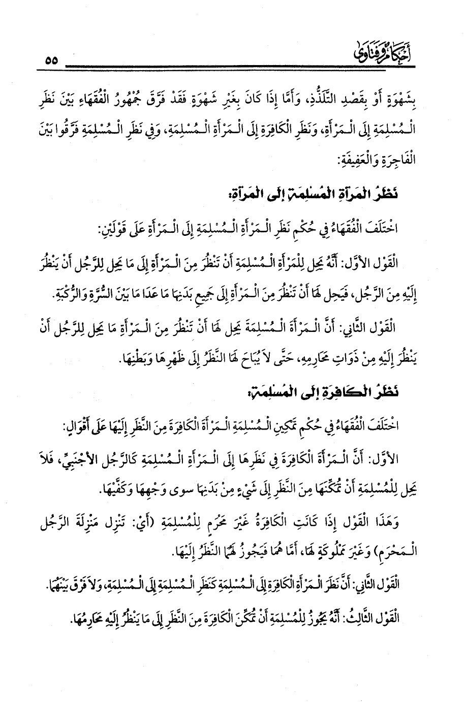 22 - اخْتَلَفَ الْفُقَهَاءُ فِي حُكْمِ نَظَرِ الْمَرْأَةِ الْمُسْلِمَةِ إِلَى الْمَرْأَةِ عَلَى قَوْلَيْنِ: