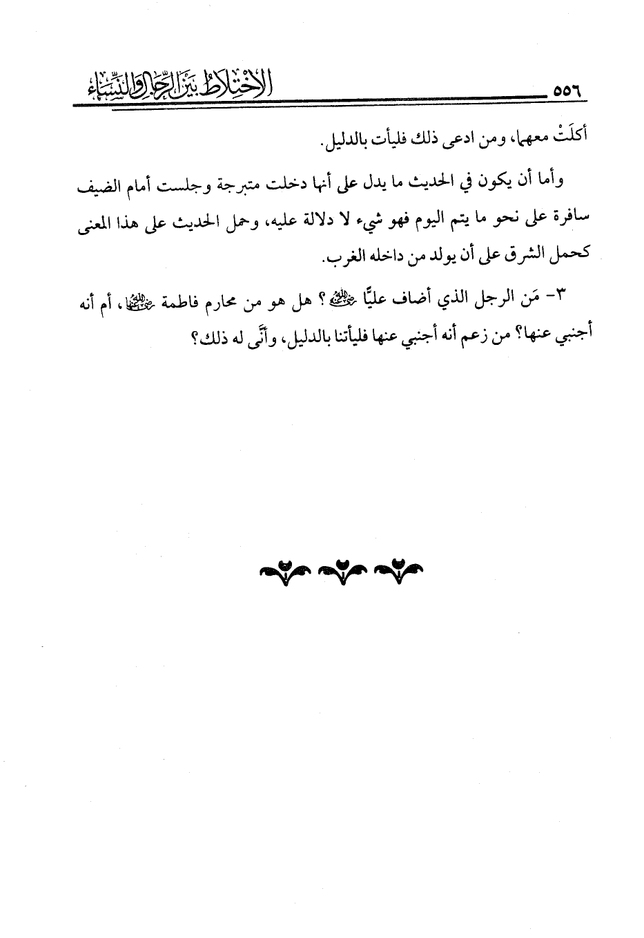 2 - هذا الأثر ليس صريحًا في الدلالة على ما يدعو إليه دعاة الاختلاط، فإنه واقعة عيْن والاحتمالات تَرِدُ عليه لمخالفته لنصوص مُحْكَمة تنهى عن الاختلاط فيُحتمل أن تكون تلك المرأة من القواعد من النساء.