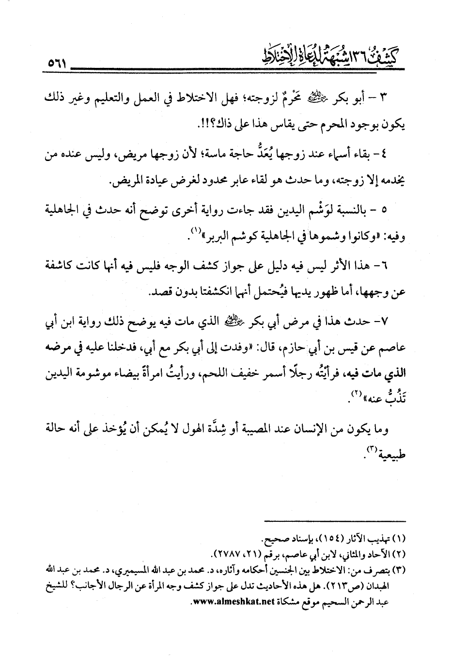 2 - مخالفتها لأحكام الإسلام التي لا تخفى على عمر ولا غيره من أهل العلم , وقد دل القرآن والسنة النبوية على وجوب الاحتجاب وتحريم الاختلاط بين الرجال والنساء على وجه يسبب الفتنة ودواعيها.