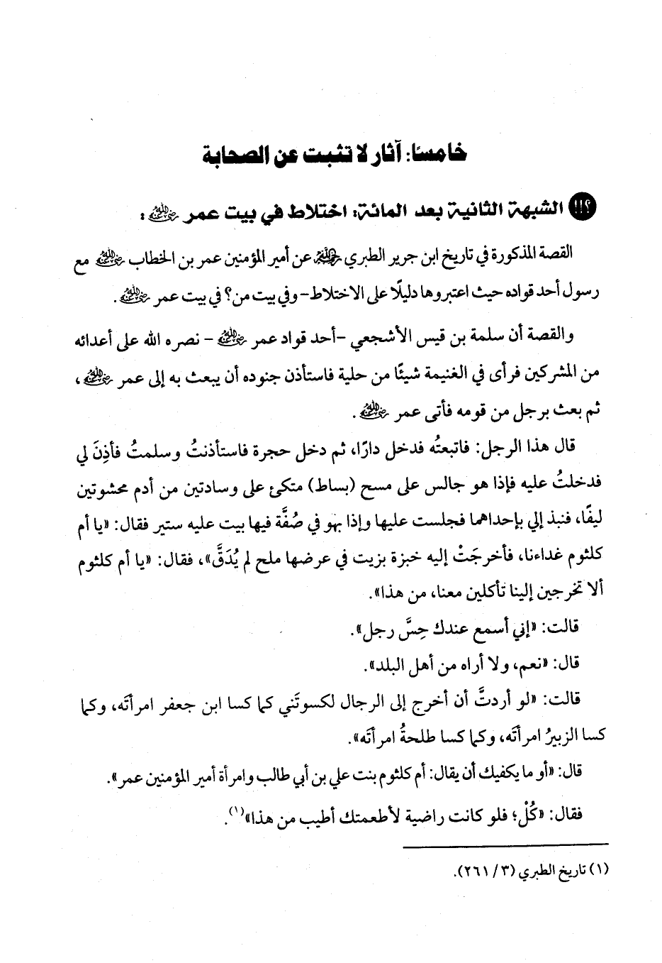 قال الشيخ علي حشيش: «إن دعاة السفور والاختلاط إذا وجدوا هذه القصة في (تاريخ الطبري) فرحوا بها ويجادلون بعزوها لابن جرير الطبري وهم يحسبون أن في العزو ثبوتًا للقصة ولكن هيهات ففرق بين التخريج والتحقيق.