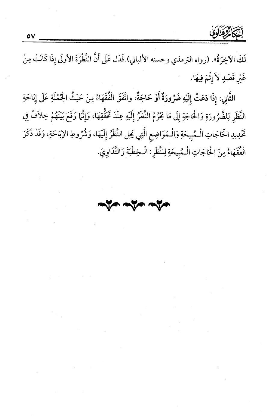 لَكَ الآخِرَةُ». (رواه الترمذي وحسنه الألباني).فَدَل عَلَى أَنَّ النَّظْرَةَ الأُْولَى إِذَا كَانَتْ مِنْ غَيْرِ قَصْدٍ لاَ إِثْمَ فِيهَا.