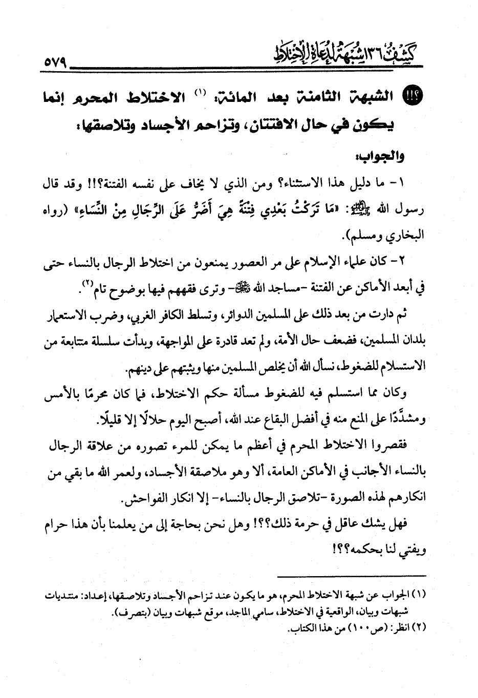 وبذلك يتضح بما لايدع مجالًا للشك أن حصر الاختلاط الممنوع بتزاحم الأجساد وتلاصقها فقط، غير صحيح.