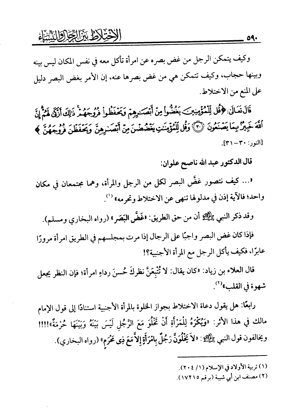 يجوز الاختلاط بشرط غض البصر واحتجاب المرأة وعدم خضوعها بالقول.