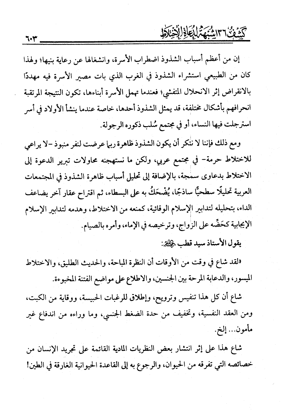 الطبيعية، ثم يلبى تلبية طبيعية، وهذا هو المنهج الذي يختاره الإسلام، مع تهذيب الطبع، وشغل الطاقة البشرية بهموم أخرى في الحياة، غير تلبية دافع اللحم والدم، فلا تكون هذه التلبية هي المنفذ الوحيد!