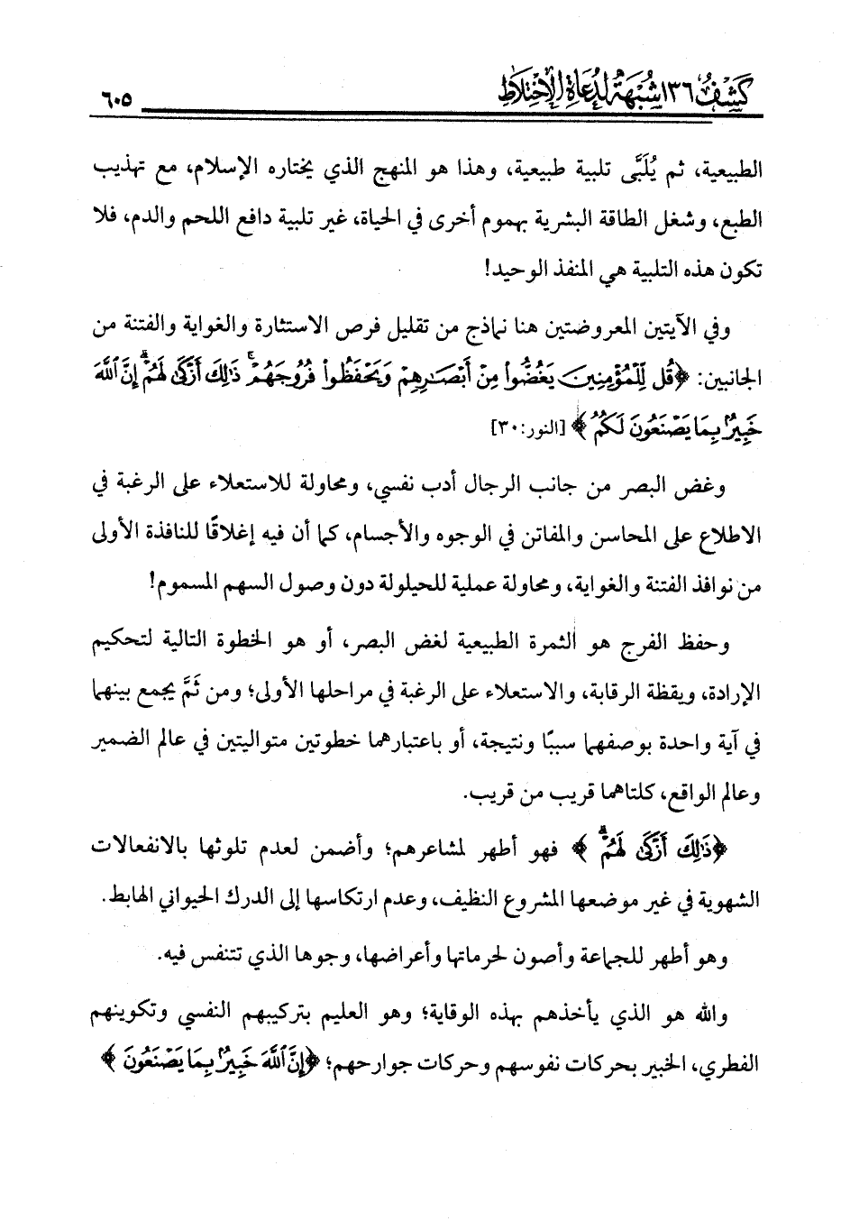 تلك خدعة كبرى ... فمهما بلغ الرجل والمرأة صلاحًا وديانة وتعففًا فلن يبلغوا طهارة أزواج النبي - صلى الله عليه وآله وسلم - ولا طهارة أصحابه - رضي الله عنهم - ومع ذلك خاطبهم الله - عز وجل - بقوله: {وَإِذَا سَأَلْتُمُوهُنَّ مَتَاعًا فَاسْأَلُوهُنَّ مِنْ وَرَاءِ حِجَابٍ ذَلِكُمْ أَطْهَرُ لِقُلُوبِكُمْ وَقُلُوبِهِنَّ} (الأحزاب:53)، فأي خوف على قلب امرأةٍ زوجها محمد - صلى الله عليه وآله وسلم -، وأي خوفٍ على قلوب خير القرون - رضي الله عنهم -.