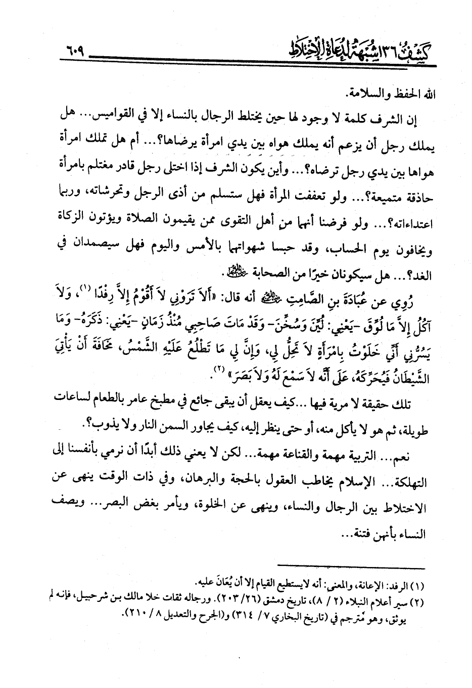 (¬1) الرد على (باحث سعودي يفند أدلة تحريم الاختلاط بالإسلام)، فهد الغفيلي، موقع نور الإسلام www.islamlight.com بإشراف الدكتور محمد بن عبد الله الهبدان.