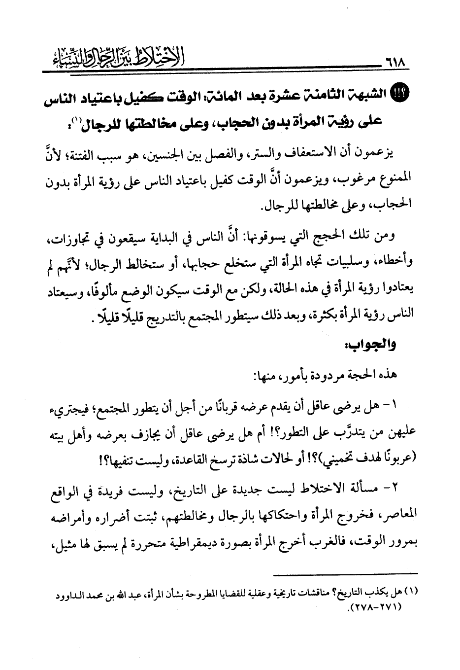 منذ طفولته، فالقول بأنّ الوقت كفيل باعتياد الناس على رؤية المرأة، قول يحطمه الرئيس الأسبق (كلينتون)، بممارسة الزنا مع (مونيكا) مرات عديدة في مقر العمل.