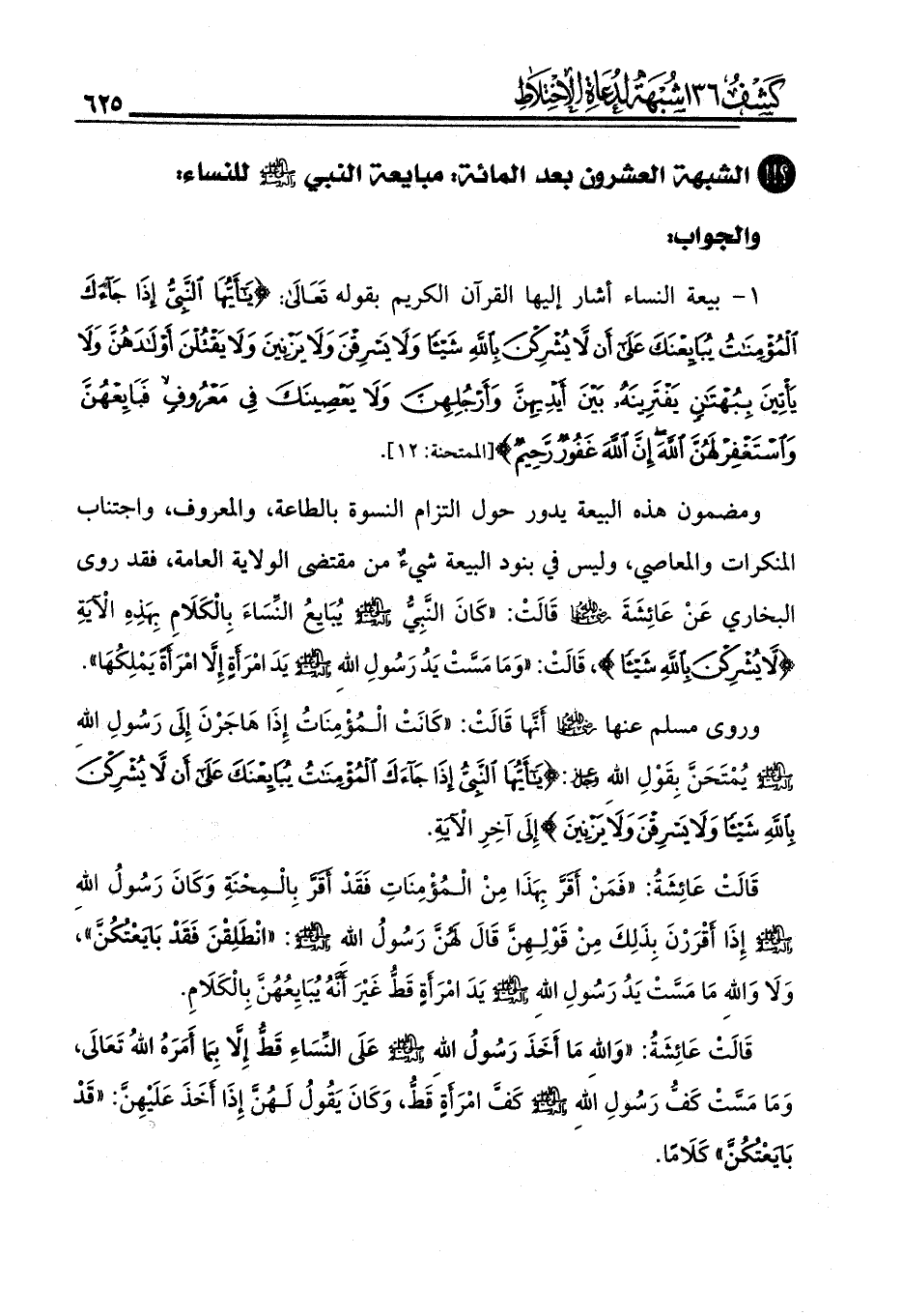 5 - ما حصل من مشاركة بعض النساء في بيعة العقبة ـ إن صح ـ فتلك البيعة في حقيقتها معاقدة على حماية الرسول - صلى الله عليه وآله وسلم - لإبلاغ الدعوة فهو عبارة عن عهد جوار وأمان، والمرأة من أهل إعطاء الأمان، وإجارة المستجير من خلال الروابط المختلفة؛ وطبقا لهذا جاءت القاعدة المقررة بشأن وحدة المسلمين وأمانهم.