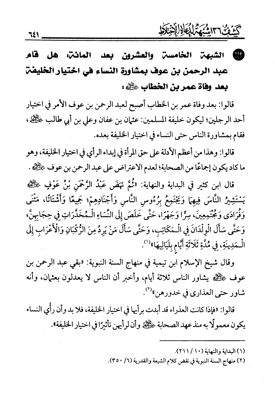 ثالثًا: بنوا على هذه القصة الضعيفة أن العذراء الصغيرة قد أبدت رأيها في اختيار الخليفة فلابد أن لرأي النساء تأثيرًا في اختيار الخليفة.