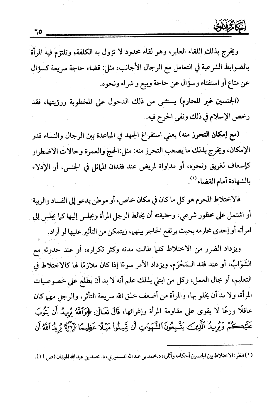 (¬1) انظر: الاختلاط بين الجنسين أحكامه وآثاره، د/محمد بن عبد الله المسيميري، د/ محمد بن عبد الله الهبدان (ص 14).