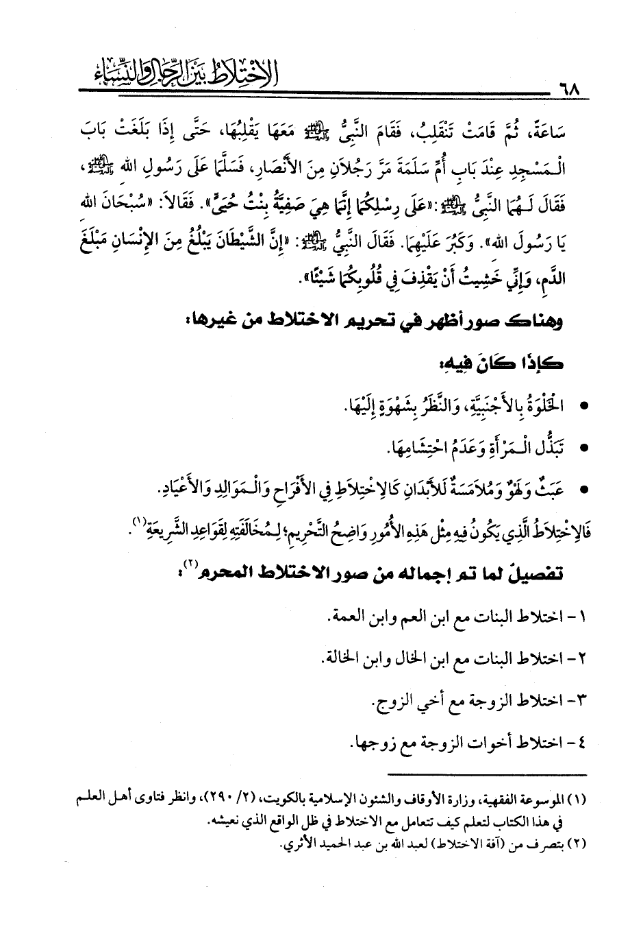 (¬2) بتصرف من (آفة الاختلاط) لعبد الله بن عبد الحميد الأثري، وانظر فتاوى أهل العلم في هذا الكتاب لتعلم كيف تتعامل مع الاختلاط في ظل الواقع الذي نعيشه.