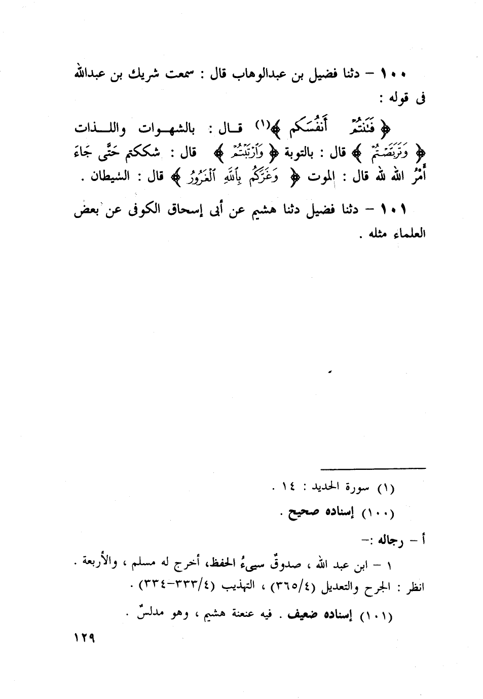164 - دثنا يُوسُفُ، دثنا الْمُحَارِبِيُّ، عَنْ جُوَيْبِرٍ، عَنِ الضَّحَّاكِ، {§يَقُولُ يَا لَيْتَنِي قَدَّمْتُ لِحَيَاتِي} [الفجر: 24] ، قَالَ: " يَقُولُ: يَا لَيْتَنِي عَمِلْتُ فِي الدُّنْيَا لِحَيَاتِي فِي الْآخِرَةِ "