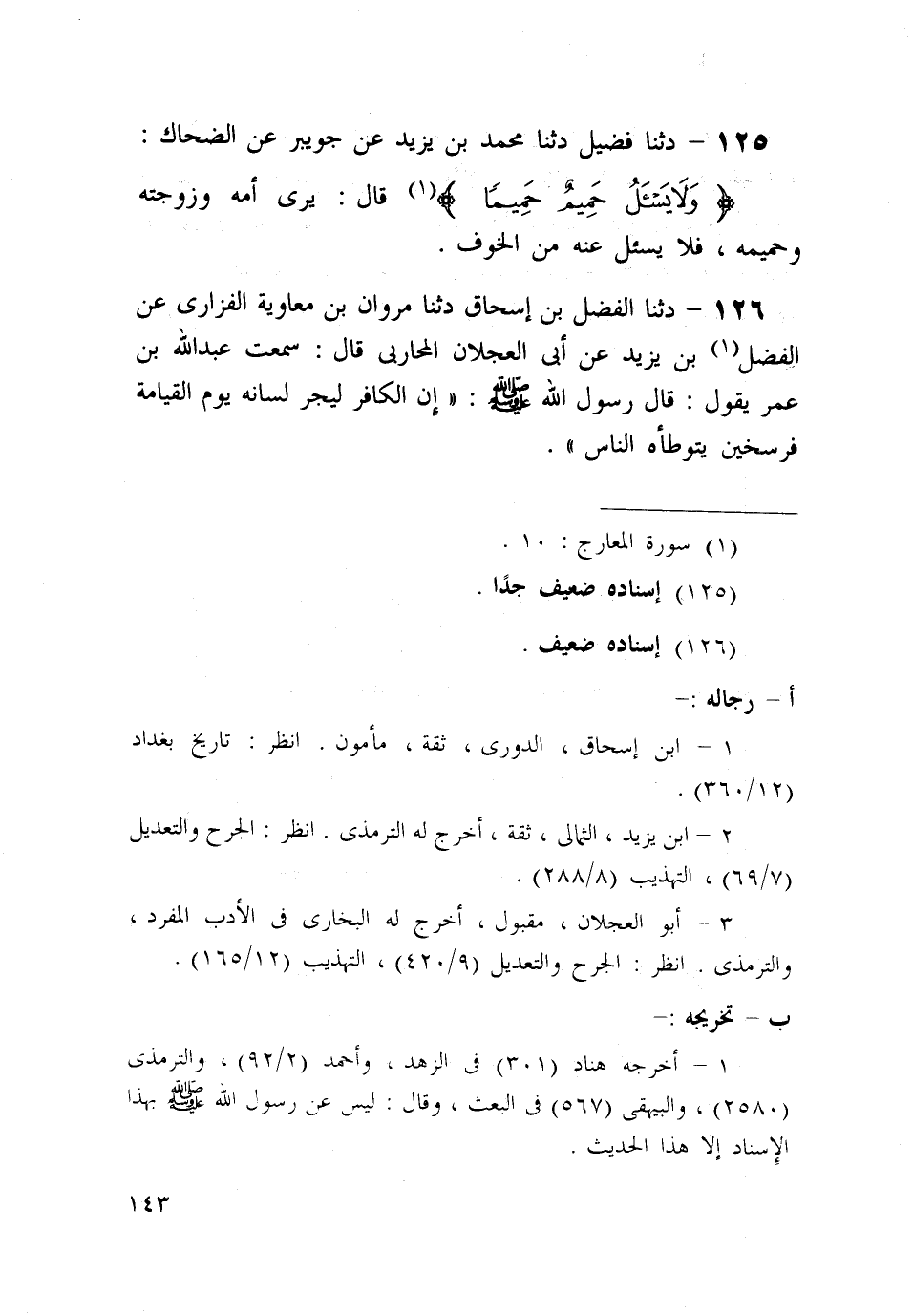 178 - دثنا أَبُو خَيْثَمَةَ، دثنا وَكِيعٌ، دثنا الْأَعْمَشُ، عَنِ الْمَعْرُورِ بْنِ سُوَيْدٍ عَنْ أَبِي ذَرٍّ، قَالَ: قَالَ رَسُولُ اللَّهِ صَلَّى اللهُ عَلَيْهِ وَسَلَّمَ: «§مَا مِنْ صَاحِبِ إِبِلٍ وَلَا بَقَرٍ وَلَا غَنَمٍ لَا يُؤَدِّي زَكَاتَهَا إِلَّا جَاءَتْ يَوْمَ الْقِيَامَةِ أَعْظَمَ مَا كَانَتْ وَأَسْمَنَهُ، تَنْطَحُهُ بِقُرُونِهَا، وَتَطَأُهُ بِأَخْفَافِهَا، كُلَّمَا نَفِدَتْ أُخْرَاهَا عَادَتْ عَلَيْهِ أُولَاهَا، حَتَّى يُقْضَى بَيْنَ النَّاسِ»