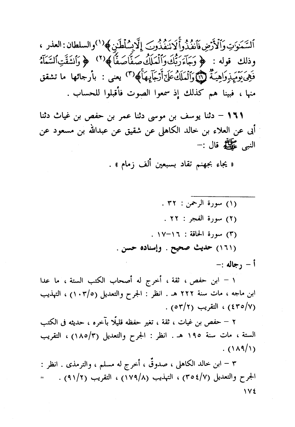 214 - دثني مُحَمَّدُ بْنُ الْحُسَيْنِ، دثني رُسْتُمُ بْنُ أُسَامَةَ، دثني الْفَضْلُ بْنُ الْمُهَلْهَلِ، عَنِ الْمُفَضَّلِ - وَكَانَ مِنَ الْعَابِدِينَ - قَالَ: «§كَانَ جَلِيسٌ لَنَا حَسَنُ التَّخَشُّعِ وَالْعِبَادَةِ، مُجْتَبٍ، وَكَانَ مِنْ أَجْمَلِ الرِّجَالِ» ، قَالَ: " فَصَلَّى حَتَّى انْقَطَعَ عَنِ الْقِيَامِ، وَصَامَ حَتَّى ثُمَّ مَرِضَ فَمَاتَ، وَكَانَ مُحَمَّدُ بْنُ النَّضْرِ الْحَارِثِيُّ لَهُ صَدِيقًا، قَالَ: وَمَاتَ مُحَمَّدٌ، قَالَ: فَرَأَيْتُ مُحَمَّدًا فِي مَنَامِي. . . فَقُلْتُ: مَا فَعَلَ أَخُوكَ. . . قَالَ: إِي وَاللَّهِ يَا أَخِي، يَبْلُونَ حَتَّى يَصِيرُوا. . . عِنْدَ النَّصِيحَةِ كَأَشْرَعَ مِنَ اللِّمَمِ "