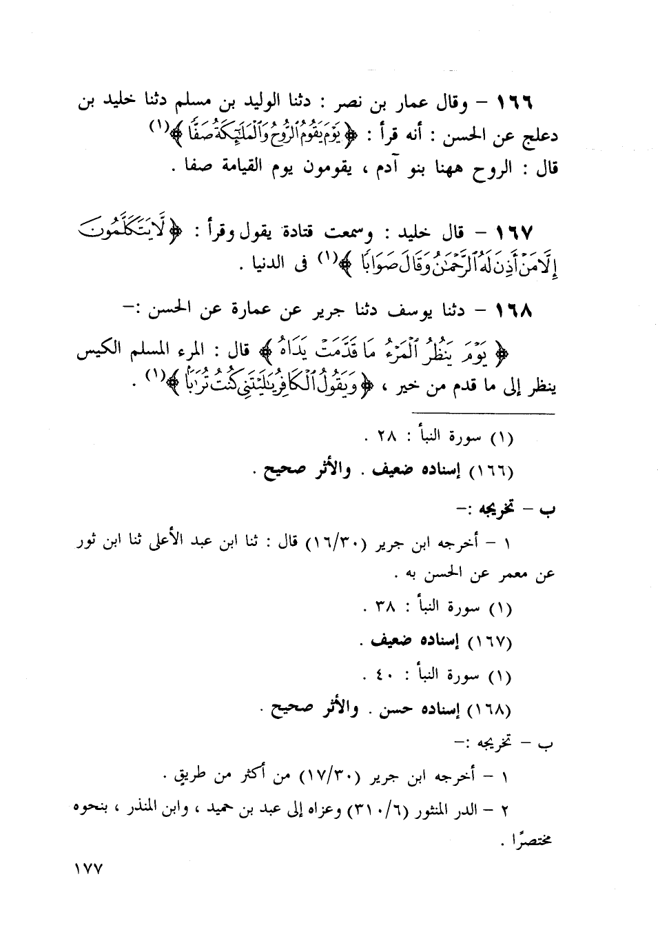 219 - دثنا حَمْزَةُ بْنُ الْعَبَّاسِ، ادنا عَبْدُ اللَّهِ بْنُ عُثْمَانَ، ادنا ابْنُ الْمُبَارَكِ، ادنا سُفْيَانُ، عَنْ سُلَيْمَانَ، عَنْ أَبِي صَالِحٍ، «إِنَّ §النَّاسَ يُحْشَرُونَ هَكَذَا - وَنَكَّسَ رَأْسَهُ، وَوَضَعَ يَدَهُ الْيُمْنَى عَلَى كُوعِهِ - لِلْقِيَامَةِ»