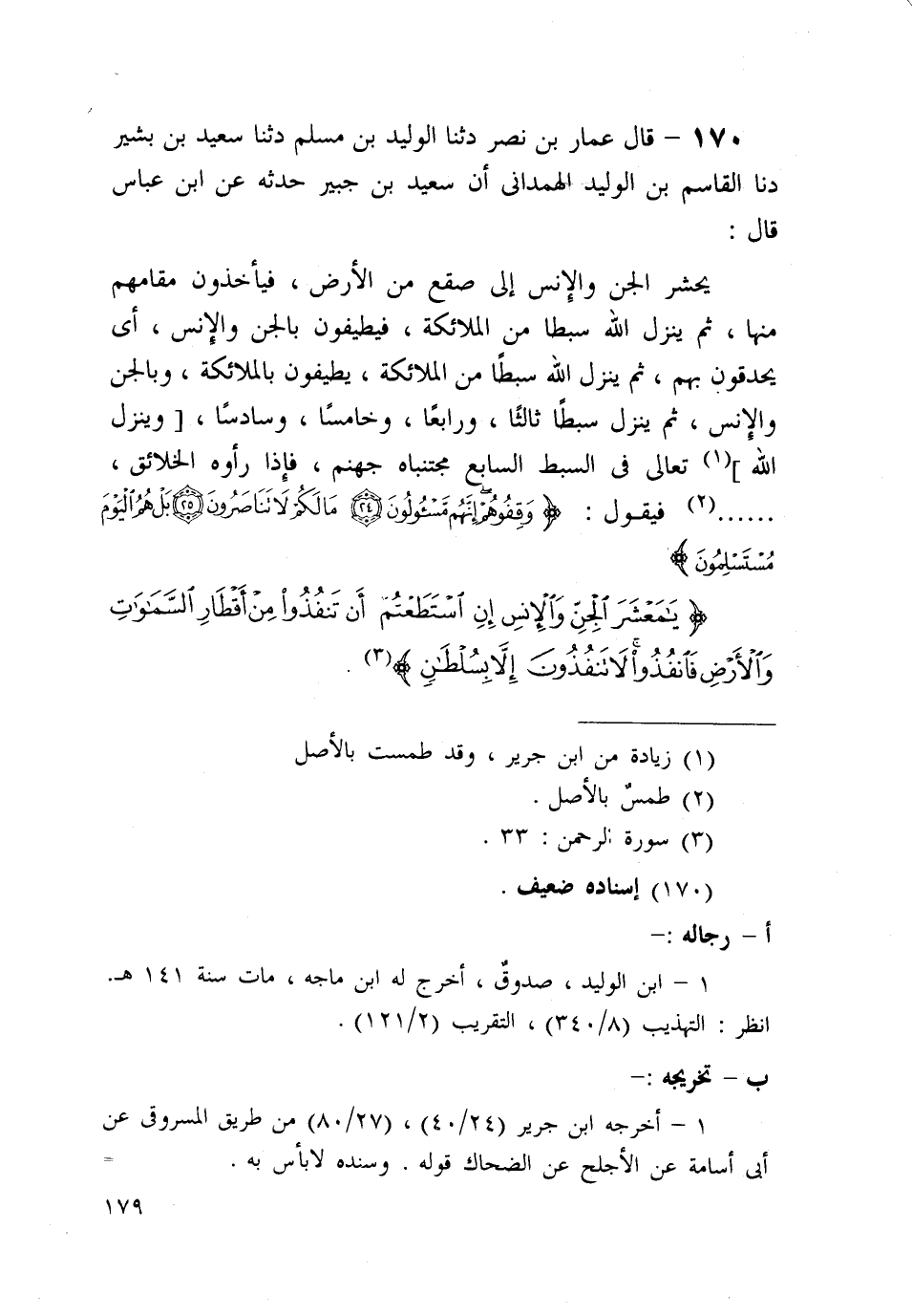222 - دثنا يَحْيَى بْنُ عَبْدِ الْحَمِيدِ الْحِمَّانِيُّ، دثنا عَبْدُ الرَّحْمَنِ بْنُ زَيْدِ بْنِ أَسْلَمَ، عَنْ أَبِيهِ، عَنِ ابْنِ عُمَرَ قَالَ: قَالَ رَسُولُ اللَّهِ صَلَّى اللهُ عَلَيْهِ وَسَلَّمَ: " §لَيْسَ عَلَى أَهْلِ لَا إِلَهَ إِلَّا اللَّهُ وَحْشَةٌ فِي قُبُورِهِمْ، وَلَا يَوْمَ نُشُورِهِمْ، وَكَأَنِّي بِأَهْلِ لَا إِلَهَ إِلَّا اللَّهُ يَنْفُضُونَ التُّرَابَ عَنْ رُءُوسِهِمْ، وَيَقُولُونَ: الْحَمْدُ لِلَّهِ الَّذِي أَذْهَبَ عَنَّا الْحَزَنَ "