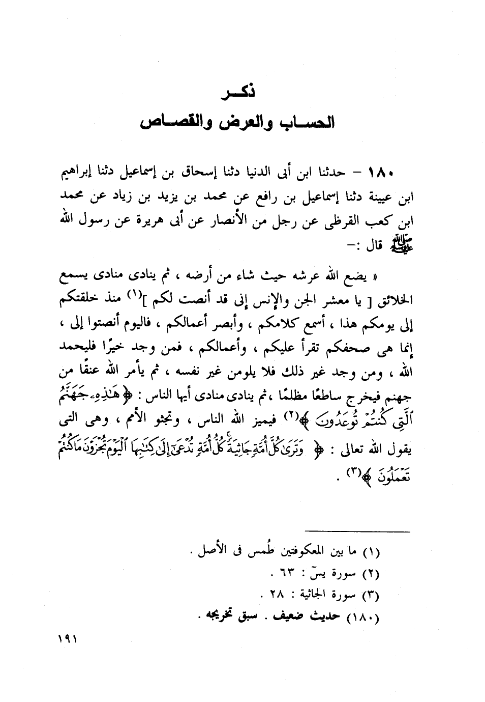 236 - دثنا هَارُونُ بْنُ عُمَرَ الْقُرَشِيُّ، دثنا الْوَلِيدُ بْنُ مُسْلِمٍ، دثنا خُلَيْدُ بْنُ دَعْلَجٍ، عَنْ قَتَادَةَ، فِي قَوْلِ اللَّهِ عَزَّ وَجَلَّ: {أَفَمَنْ يَمْشِي مُكِبًّا عَلَى وَجْهِهِ} [الملك: 22] قَالَ: هَذَا الْكَافِرُ، فَرَاكِبٌ عَلَى مَعَاصِي اللَّهِ فِي دُنْيَاهُ، يَحْشُرُهُ يَوْمَ الْقِيَامَةِ عَلَى وَجْهِهِ. قَالُوا: يَا رَسُولَ اللَّهِ، كَيْفَ يَمْشِي عَلَى وَجْهِهِ؟ قَالَ: «إِنَّ §الَّذِي أَمْشَاهُ عَلَى رِجْلِهِ قَادِرٌ أَنْ يَحْشُرَهُ عَلَى وَجْهِهِ» ، قَالَ قَتَادَةُ: " قَالَ اللَّهُ عَزَّ وَجَلَّ: أَهَذَا الْكَافِرُ أَهْدَى: {أَمَّنْ يَمْشِي سَوِيًّا عَلَى صِرَاطٍ مُسْتَقِيمٍ} [الملك: 22] ، «مُؤْمِنٌ اسْتَقَامَ عَلَى أَمْرِ اللَّهِ فِي دُنْيَاهُ، فَبَعَثَهُ اللَّهُ يَوْمَ الْقِيَامَةِ يَمْشي سَوِيًّا»