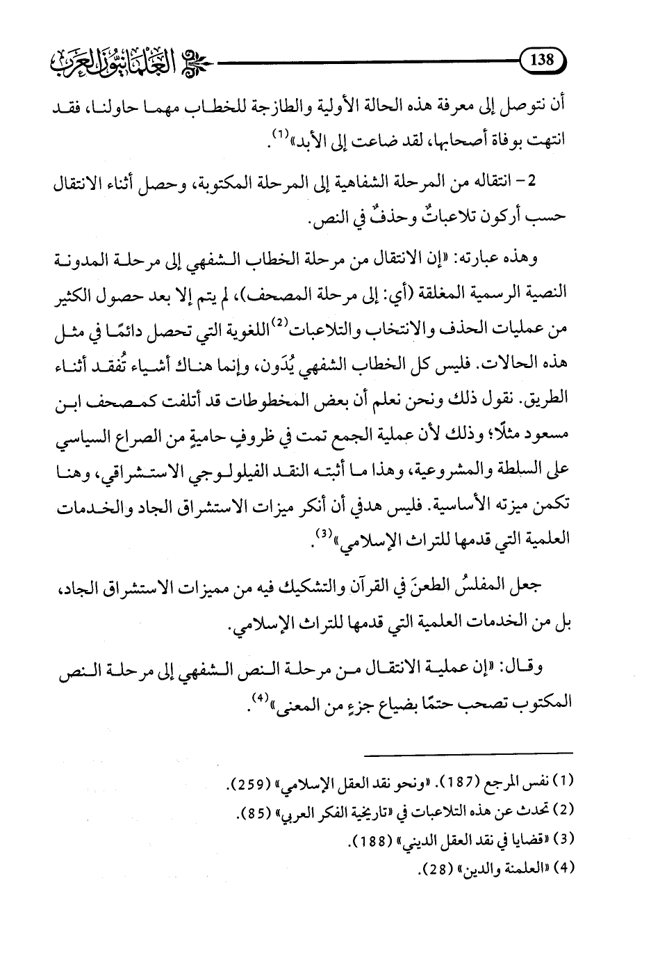 (¬3) قضايا في نقد العقل الديني (188).