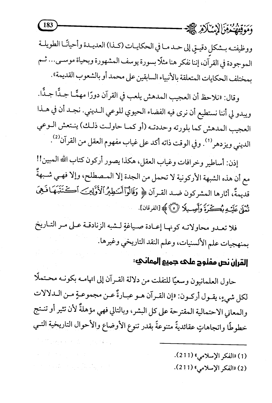 (¬2) الفكر الإسلامي (211).
