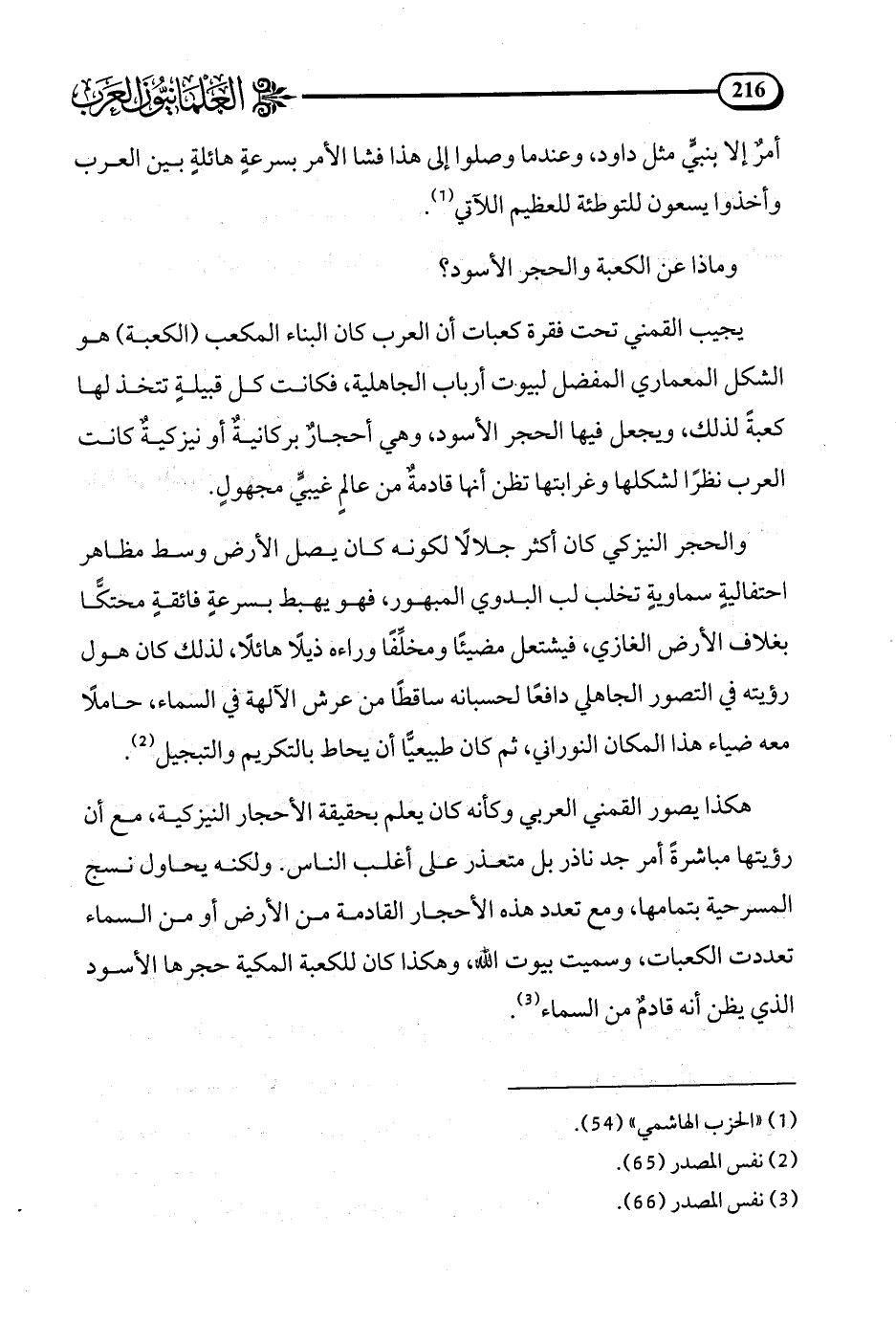 أمر إلا بنبي مثل داود. وعندما وصلوا إلى هذا فشا الأمر بسرعة هائلة بين العرب وأخذوا يسعون للتوطئة للعظيم اللآتي (¬1).