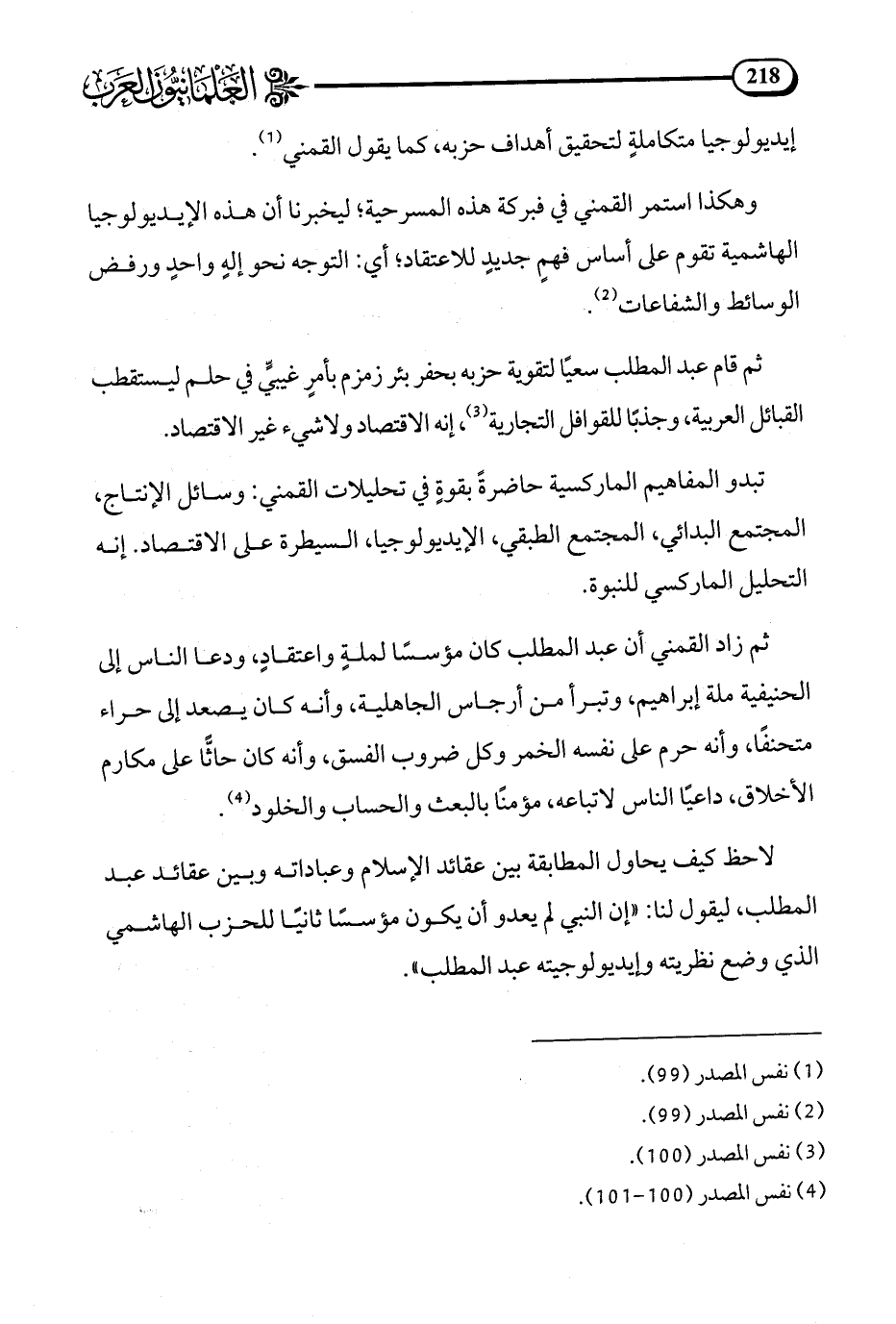 لاحظ كيف يحاول المطابقة بين عقائد الإسلام وعباداته وبين عقائد عبد المطلب، ليقول لنا: إن النبي لم يعدو أن يكون مؤسسا ثانيا للحزب الهاشمي الذي وضع نظريته وإيديولوجيته عبد المطلب.