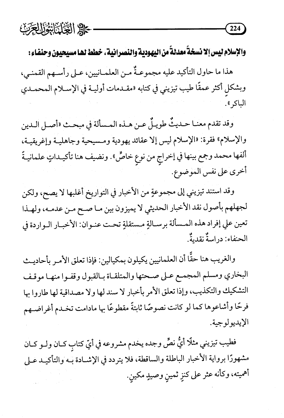 والإسلام ليس إلا نسخة معدلة من اليهودية والنصرانية، خطط لها مسيحيون وحنفاء: