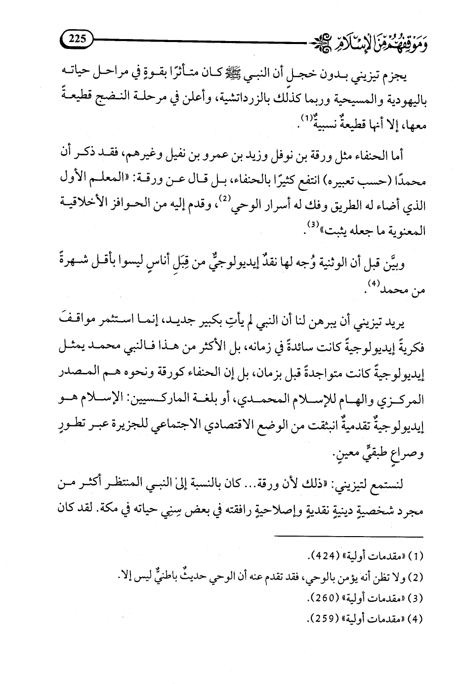 وبيَّن قبل أن الوثنية وُجه لها نقد إيديولوجي من قبل أناس ليسوا بأقل شهرة من محمد (¬4).