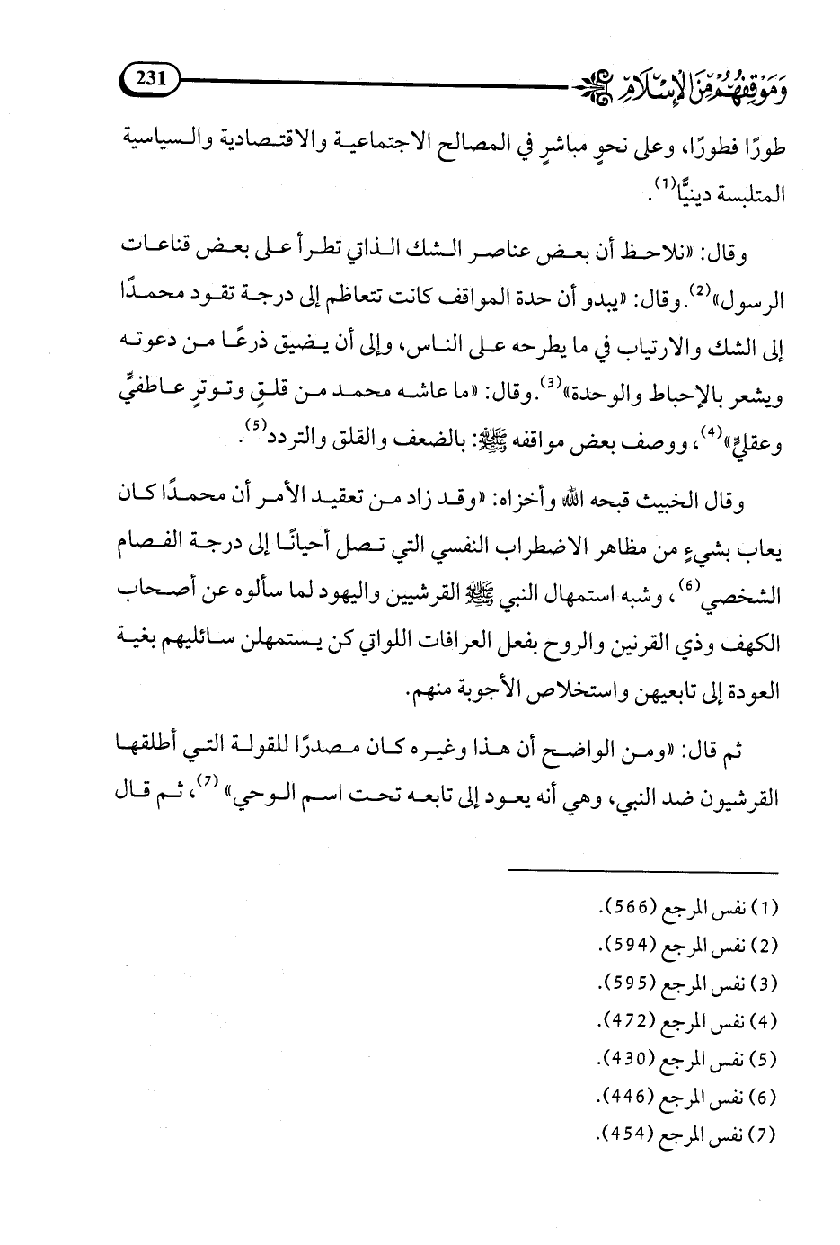 وقال: نلاحظ أن بعض عناصر الشك الذاتي تطرأ على بعض قناعات الرسول (¬2).
