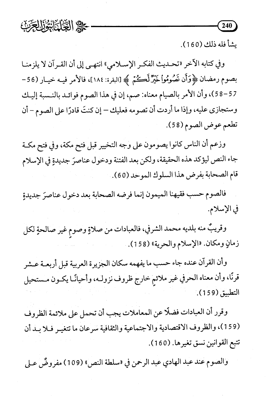 والصوم عند عبد الهادي عبد الرحمن في سلطة النص (109) مفروض على