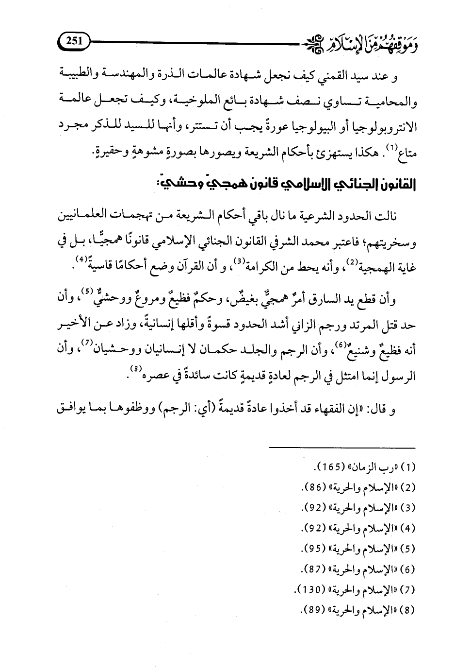 فاعتبر محمد الشرفي القانون الجنائي الإسلامي قانونا همجيا. بل في غاية الهمجية (¬2).