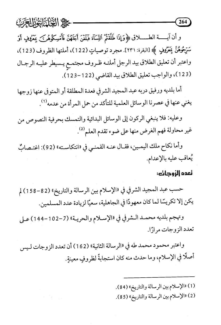 (¬2) الإسلام بين الرسالة والتاريخ (85).