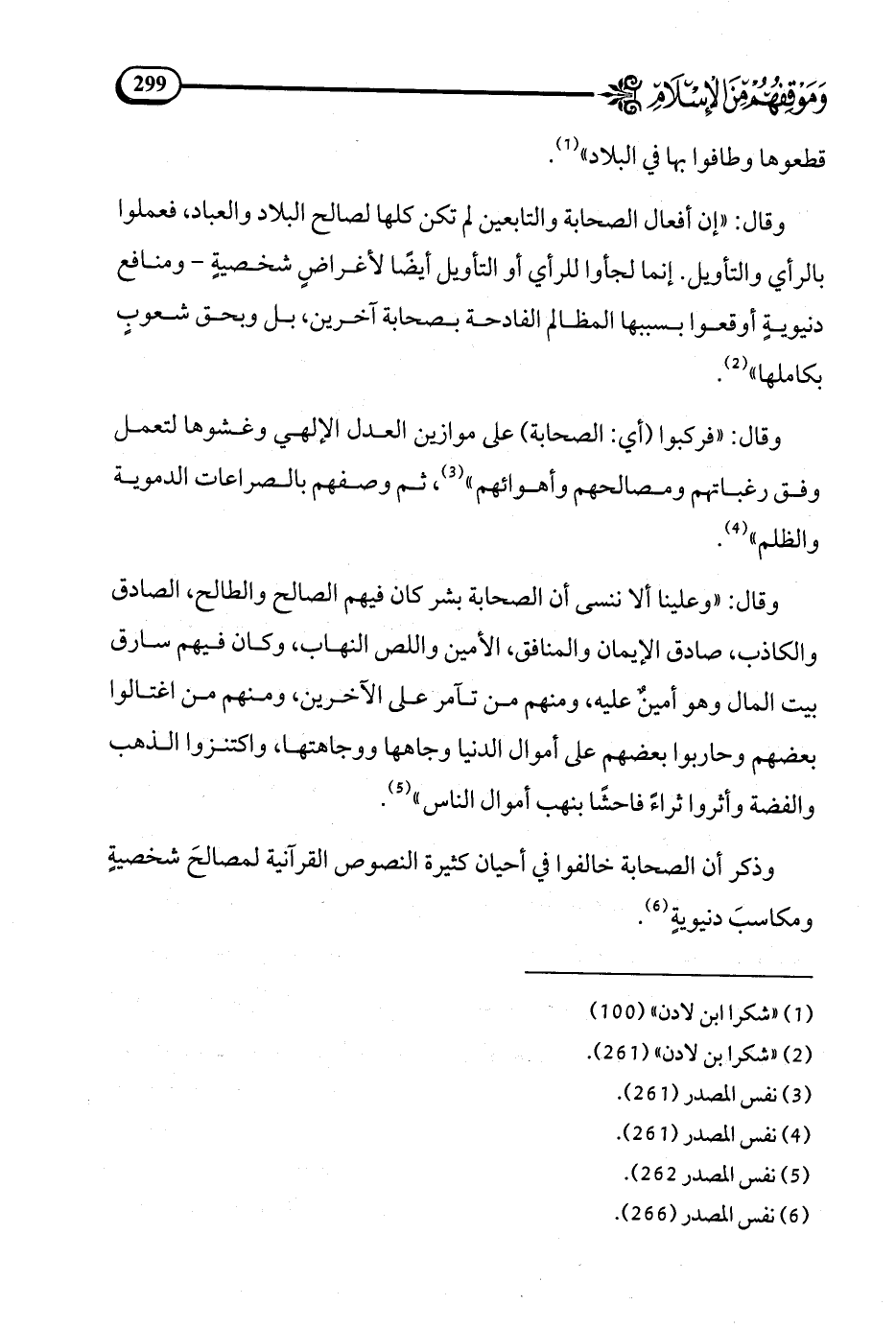 وقال: فركبوا (أي: الصحابة) على موازين العدل الإلهي وغشوها لتعمل وفق رغباتهم ومصالحهم وأهوائهم (¬3).